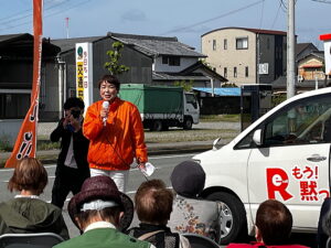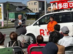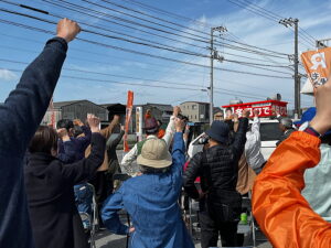 9時30分、支援者の皆様方に見送られ、街宣活動へと出発しました。